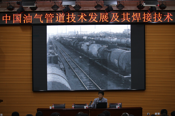 報(bào)告會(huì)上“石油一輩子,焊接一輩子?!毖φ窨淌谑紫扔靡痪湓捀爬怂c焊接的不解之緣。薛教授幽默風(fēng)趣地與師生們分享了自己與管道事業(yè)的精彩故事,介紹了國(guó)內(nèi)外管道建設(shè)的歷史與現(xiàn)狀,提出了焊接接頭高強(qiáng)匹配、焊接熱影響區(qū)開(kāi)裂及軟化、焊接缺陷容限等是管道焊接需要解決的關(guān)鍵技術(shù)問(wèn)題,暢談了未來(lái)中國(guó)管道技術(shù)的發(fā)展趨勢(shì),著重講解了高效焊接技術(shù)在油氣管道中的應(yīng)用。