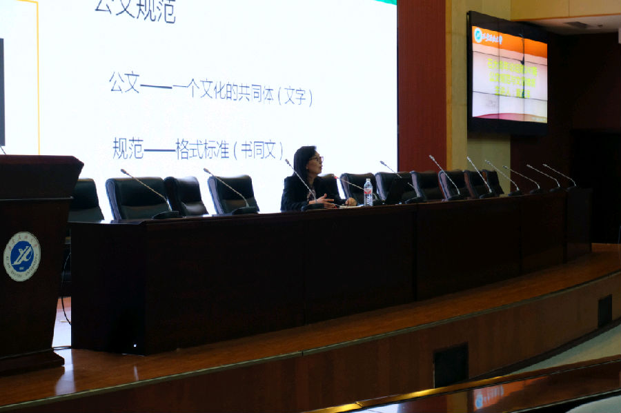 黃慶豐老師現(xiàn)為西安石油大學人文學院副院長,陜西省寫作學會副秘書長,國際漢語應用寫作學會理事。在講座中,黃老師首先闡述了公文的概念,從中國歷史上公文的發(fā)展與演變角度講起,以眾多歷史博物館中文物上的文字文獻為例,展示了文字文明與公文的重要性。隨后,通過歷史文獻資料,名人事跡等講述了“文章”“文體”等概念要求。最后表示時代在發(fā)展,只有不斷學習進步,才不會落下腳步。黃老師以日本,韓國學習中國文化、中國學習其他國家為例,提出自己的觀點:只有比其他人更努力,懂得更多,才更有可能獲得成功。在互動環(huán)節(jié),同學們踴躍發(fā)言,黃老師就“機器人替代危機”、“文科就業(yè)優(yōu)劣”等問題認真進行了解答。