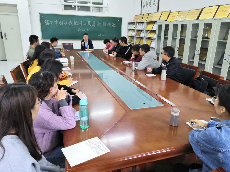 為進(jìn)一步加強(qiáng)對(duì)研究生的思想政治教育,拓展研究生專業(yè)知識(shí),加深學(xué)生對(duì)所學(xué)專業(yè)及未來前景的認(rèn)識(shí),10月9日上午,理學(xué)院在鄠邑校區(qū)111室舉辦題為“騰飛中國(guó)和我的專業(yè)發(fā)展”第一場(chǎng)專題講座,副院長(zhǎng)折延宏教授主講、黨委副書記馬小剛主持,2019級(jí)全體研究生參加。