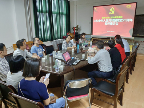 外國語學院黨委理論中心組集中收看慶祝中華人民共和國成立70周年大會并召開教師座談會
