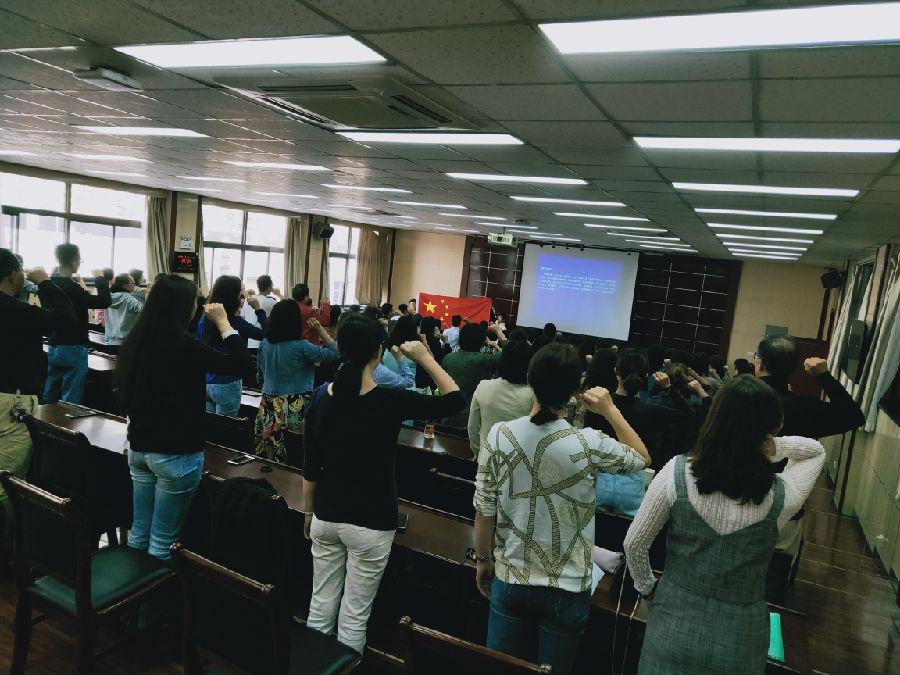 會議首先安排進行了教師集體宣誓儀式。宣誓儀式由蔡強書記領(lǐng)誓,學(xué)院領(lǐng)導(dǎo)、全體教職工110余人全體起立,右手舉拳,面對國旗莊嚴誓言,鄭重承諾履行教師職責(zé),牢記人民教師職業(yè)初心與光榮使命。通過宣誓活動,全體教職工進一步提升了服務(wù)國家、獻身教育的思想意識,增強了作為一名人民教師的職業(yè)榮譽感和社會責(zé)任感。