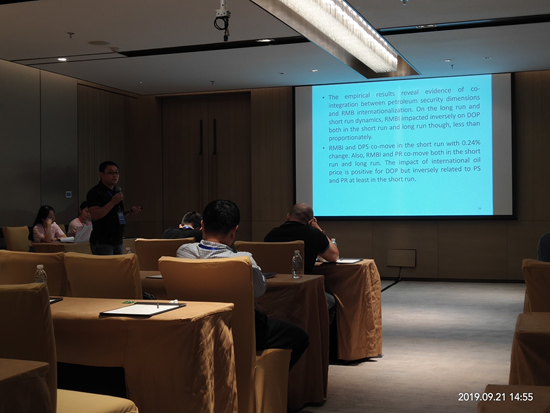 9月21日,陳丁博士在“能源供應(yīng)與能源安全”分論壇宣讀題為“Does Renminbi Internationalization Matter for Petroleum Security in China?-Evidence from A Disaggregate Analysis”的學(xué)術(shù)論文,并與多位專家進(jìn)行現(xiàn)場討論。