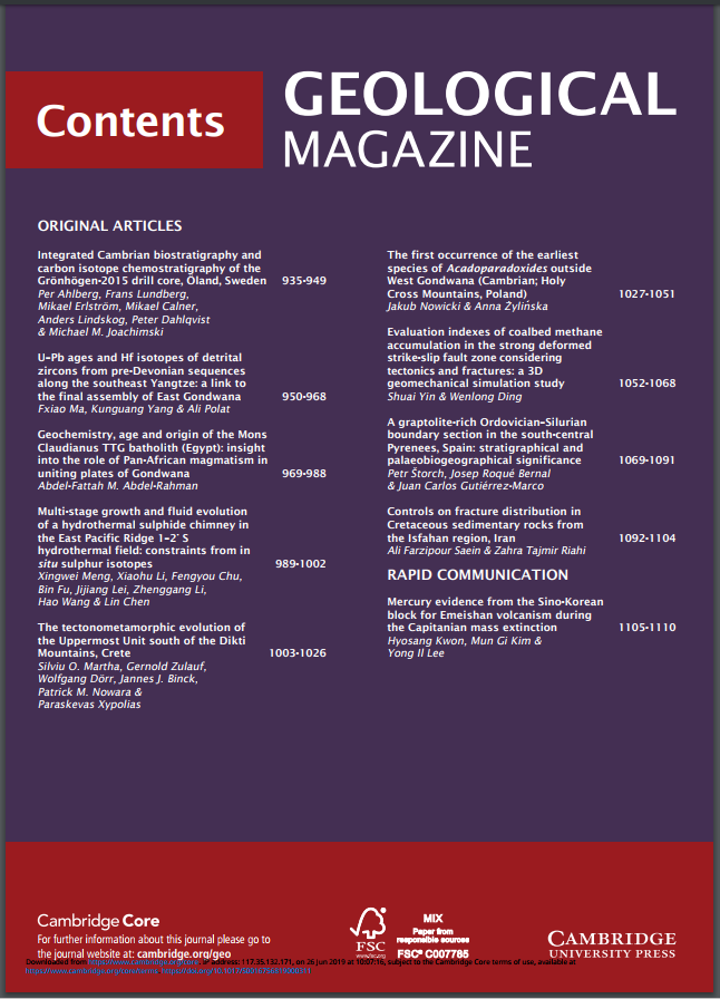 根據(jù)2019年9月份公布的ESI數(shù)據(jù)庫最新顯示,地球科學(xué)與工程學(xué)院一篇論文成功入選地質(zhì)學(xué)領(lǐng)域TOP1%高被引論文,一年內(nèi)被引頻次達到9次。該論文題為“Evaluation indexes of coalbed methane accumulation in the strong deformed strike-slip fault zone considering tectonics and fractures: A 3D geomechanical simulation study”,于2019年6月發(fā)表于地質(zhì)類期刊《Geological Magazine》。第一作者為地球科學(xué)與工程學(xué)院尹帥博士,第一單位為西安石油大學(xué)。