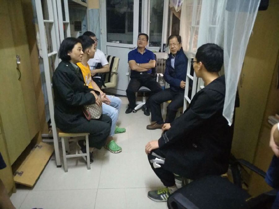 晚22時許,2019級新生訓(xùn)練結(jié)束后,何書記一行來到17號學(xué)生公寓樓新生宿舍,首先向全體參訓(xùn)新生送去了中秋月餅,表達了學(xué)院對同學(xué)們節(jié)日里最真摯的祝福。其次,何書記一行視察參訓(xùn)新生宿舍內(nèi)務(wù)情況,對同學(xué)們能夠嚴格按照軍訓(xùn)標(biāo)準(zhǔn)要求自己進行了肯定。此外,何書記、仵院長、畢軼慧副書記與同學(xué)們進行了座談交流,同學(xué)們介紹了自身家鄉(xiāng)、學(xué)習(xí)、生活等方面的情況,并暢談了入學(xué)以后、軍訓(xùn)期間的感受以及大學(xué)期間規(guī)劃,座談期間學(xué)生宿舍里歡聲笑語,洋溢著溫馨、熱烈的氛圍。