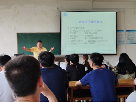 會議伊始,張家田教授對研究生新生的到來表示了歡迎,并以“淺談研究生的知識構(gòu)成與基本素質(zhì)”為主題,結(jié)合自身經(jīng)歷從研究生的知識構(gòu)成、能力構(gòu)成、基本素質(zhì)養(yǎng)成幾個方面進行了深入的講解。對我院研究生的日常學習生活提出三點要求;一、研究生的能力應(yīng)該從學習、組織、語言、適應(yīng)力等幾方面全面發(fā)展,綜合提升自身素質(zhì)。二、研究生學習期間保持平衡心態(tài),積極主動與老師交流學習生活狀態(tài)。三、做人為做事之本,做事為要,做人為先。
