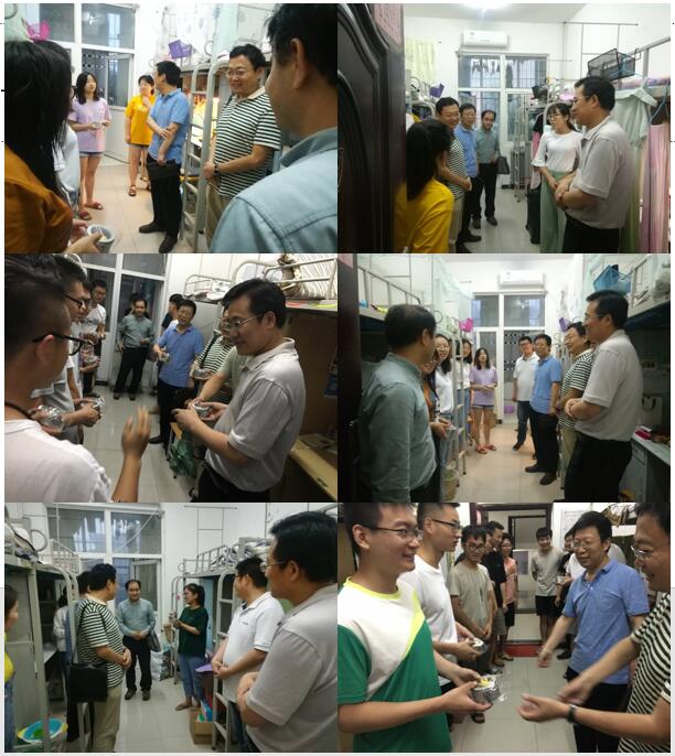 學(xué)院領(lǐng)導(dǎo)老師一行到16號和18號學(xué)生宿舍看望畢業(yè)生。學(xué)院黨政領(lǐng)導(dǎo)對同學(xué)們順利畢業(yè)表示熱烈祝賀,詳細(xì)詢問了學(xué)生的畢業(yè)去向,了解他們對學(xué)校工作的意見建議,并向讀研深造的學(xué)生發(fā)放學(xué)院精心定制的考研紀(jì)念品。馬行天書記寄語學(xué)生在新的平臺不斷努力、建功立業(yè),母校期待學(xué)子的好消息。譚成仟院長勉勵畢業(yè)生,青年學(xué)生應(yīng)該奮斗,不要在該奮斗的年齡選擇安逸。劉之的副院長說母校始終是學(xué)子心中的情節(jié),是學(xué)子的依靠,希望同學(xué)們有時(shí)間常回來看看。學(xué)生們表達(dá)了對老師和同窗的不舍之情和對母校四年培養(yǎng)的感激之情。