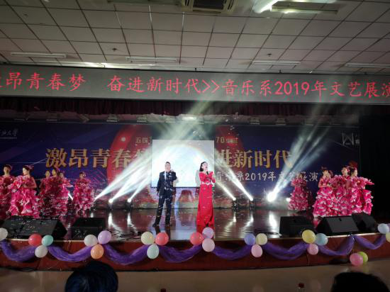 為紀念五四運動100周年,慶祝新中國70華誕,我校音樂系于6月5日在鄠邑校區(qū)舉辦了2019年文藝展演。校黨政領導李天太、張木、蘇文甫以及部分職能處室負責人,鄠邑校區(qū)本科生共計400余人觀看晚會。
