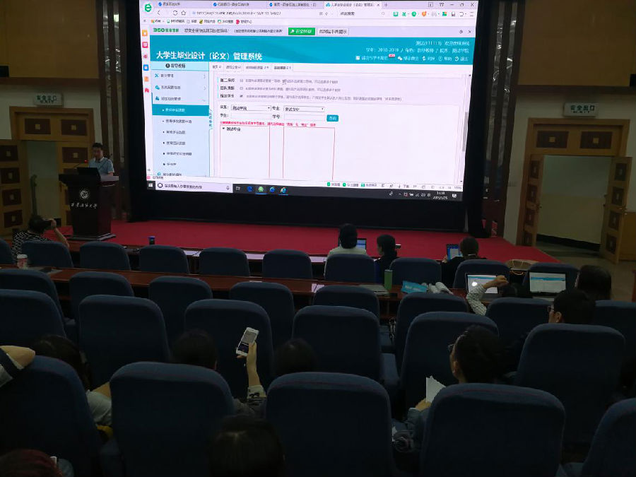 此次培訓得到了教務處的大力支持,教務處實踐教學科劉曉東老師結合外國語學院外語專業(yè)特點,對外語專業(yè)畢業(yè)論文網(wǎng)上管理進行了詳細講解,并現(xiàn)場解答了指導老師提出的問題。