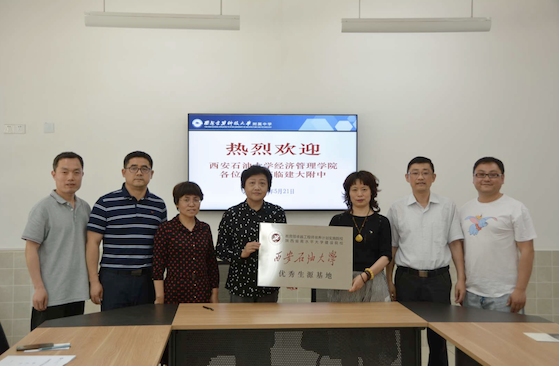 2019年5月21日,經濟管理學院院長王君萍、財務處副處長聶朝恩、陳丁老師等一行三人代表學校赴西安建筑科技大學附屬中學,就共建優(yōu)秀生源基地等事宜進行座談、達成共識,雙方簽約共建優(yōu)秀生源基地,并舉行授牌儀式。