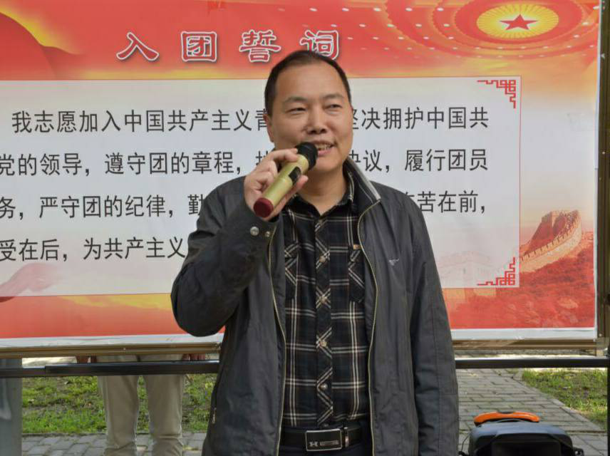 最后,團(tuán)員青年齊聲高唱中國(guó)共青團(tuán)團(tuán)歌《光榮啊,共青團(tuán)》。