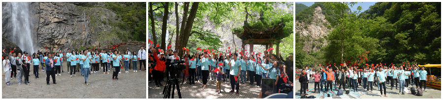 崇山峻嶺,飛瀑入潭,峰巒疊嶂、溝谷連綿。當天上午,人文學院部分領導、教師、學生黨員和入黨積極分子來到風景優(yōu)美的太平國家森林公園,與景區(qū)的工作人員、游客一起,以飽滿的熱情投入到本次活動中。在景區(qū)內(nèi)石船子、彩虹瀑布等景點,《我和我的祖國》、《歌唱祖國》兩首歌曲在同學們的演繹下,嘹亮的歌聲回蕩在山林綠水間,激揚的旋律、鏗鏘的唱詞吸引周圍游客紛紛駐足。在現(xiàn)場越來越熱烈的氣氛中,大家情緒高漲,跟著音樂哼唱、紛紛揮舞著小紅旗,五星紅旗交相輝映,匯成一片紅色海洋,令人激情澎湃。