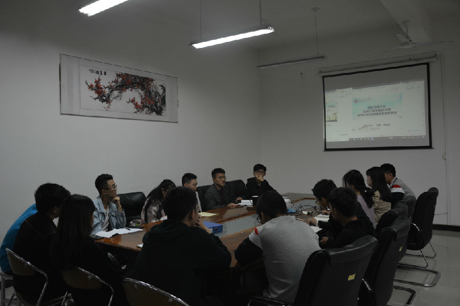 ????????????????????4月28日晚7時,石油工程學院在石工地科樓561會議室成功召開2018級學生干部述職匯報會。石油工程學院2018級輔導員劉曉陽老師、6名輔導員助理及12位班長參加了會議。????