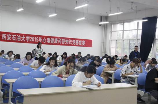 為進(jìn)一步推進(jìn)我校心理育人工作深入開展,引導(dǎo)廣大同學(xué)積極關(guān)注自身和他人的心理健康,學(xué)習(xí)和傳播心理健康知識(shí),提升學(xué)生心理素質(zhì),促進(jìn)學(xué)生全面發(fā)展,4月23日晚,西安石油大學(xué)2019年心理健康科普知識(shí)競(jìng)賽復(fù)賽在B115舉行。心理健康科普知識(shí)競(jìng)賽分初賽、復(fù)賽和決賽三階段進(jìn)行。初賽活動(dòng)由各院(系)安排,組織全體學(xué)生學(xué)習(xí)心理健康知識(shí),并進(jìn)行考核,選拔出三名優(yōu)勝選手,組成院(系)代表隊(duì)參加學(xué)校復(fù)賽。