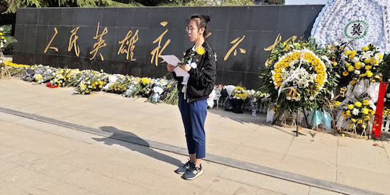 會(huì)計(jì)1603班歐陽(yáng)榕襄作為代表致悼詞。她說(shuō)到,矗立在大家面前的烈士豐碑,訴說(shuō)著英雄們光榮而無(wú)悔的事業(yè),歲月的風(fēng)塵早已在它身上刻下斑駁的印記,讓大家無(wú)法不回想起那段滄桑沉重的往事。七百余位革命烈士長(zhǎng)眠于此。他們?yōu)樽非缶葒?guó)救民的真理拋頭顱,灑熱血;為中華民族的解放事業(yè)前仆后繼,視死如歸。作為新時(shí)代的莘莘學(xué)子,更應(yīng)充滿愛(ài)國(guó)之情,樹(shù)立報(bào)國(guó)之心,努力學(xué)習(xí),繼承先烈遺志,為家鄉(xiāng)的建設(shè)、為祖國(guó)的富強(qiáng)而努力奮斗。