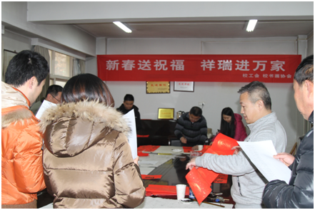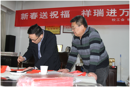 2019年1月14日,農(nóng)歷己亥新年來(lái)臨之際,由校工會(huì)和校書(shū)畫(huà)協(xié)會(huì)組織的“新春送祝福 祥瑞進(jìn)萬(wàn)家”送春聯(lián)活動(dòng)在校工會(huì)會(huì)議室進(jìn)行,來(lái)自我校書(shū)畫(huà)協(xié)會(huì)的三位書(shū)法愛(ài)好者現(xiàn)場(chǎng)為我校教職工義務(wù)書(shū)寫(xiě)春聯(lián),送上校工會(huì)對(duì)全體教職工的新春祝福。校黨委副書(shū)記、校書(shū)畫(huà)協(xié)會(huì)會(huì)長(zhǎng)雷西合也從百忙之中來(lái)到現(xiàn)場(chǎng)為大家書(shū)寫(xiě)春聯(lián),我校教職工、離退休職工紛紛前來(lái),現(xiàn)場(chǎng)歡聲笑語(yǔ),一片祥和景象。