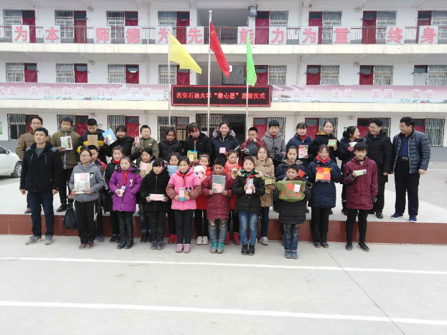 1月11日,校團(tuán)委組織青年志愿者團(tuán)隊(duì)前往永壽縣開展“萬名學(xué)子扶千村”社會(huì)實(shí)踐活動(dòng),為鄉(xiāng)村中小學(xué)送去“微心愿”物品,為貧困戶送溫暖。
