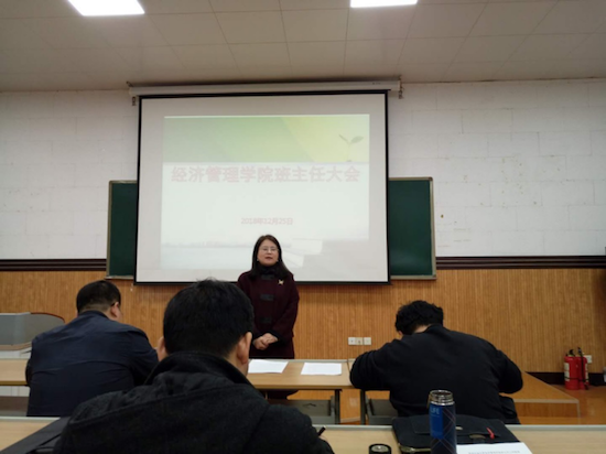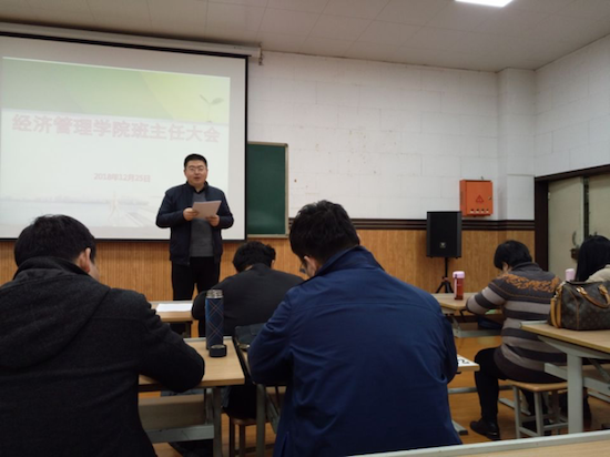 為進一步做好立德樹人工作,提高管理學生和服務質量,增強班主任之間的交流,經濟管理學院于2018年12月25日在雁塔校區(qū)第二教學樓東階101召開全院班主任大會。學院黨委副書記趙海濤主持,全體班主任及全體學工干部參加了會議。