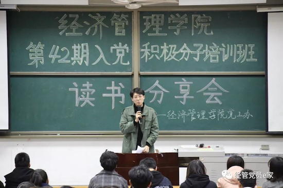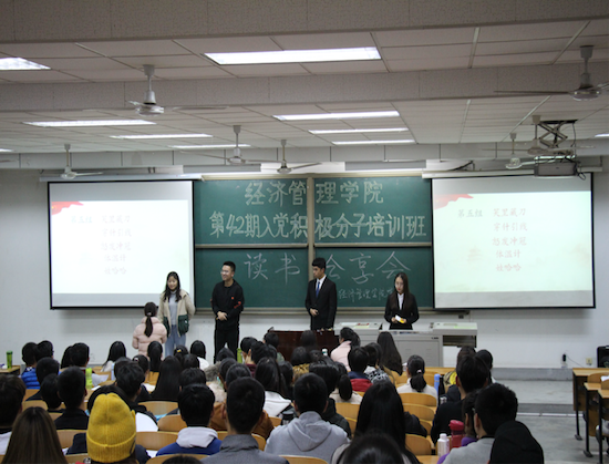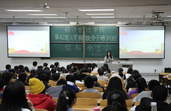 為深入學(xué)習(xí)黨的十九大精神,學(xué)好黨的知識,提高黨性修養(yǎng),同時(shí)豐富課余生活,陶冶情操,擴(kuò)展知識面,增加文化素養(yǎng),提高個(gè)人修養(yǎng),11月28-29日晚,由經(jīng)濟(jì)管理學(xué)院黨委主辦,學(xué)生黨建工作辦公室承辦的“書香校園建設(shè)”系列活動之“讀書分享會”于鄠邑校區(qū)教學(xué)A區(qū)139教室順利舉行,黨工辦學(xué)生干部、入黨積極分子200余人參加。