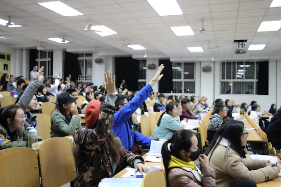 隨后的知識競賽環(huán)節(jié),分為搶答題、填空題、簡答題三個(gè)部分。整個(gè)競賽過程中氣氛緊張,異常激烈。在搶答題環(huán)節(jié),各小組不甘示弱,分秒必爭,為了搶得題目的回答權(quán)都拼盡了全力?;卮饐栴}時(shí)精神飽滿,認(rèn)真作答,為自己的隊(duì)伍奮力拼搏,展現(xiàn)了較強(qiáng)的文化素養(yǎng)和豐富的閱讀量。