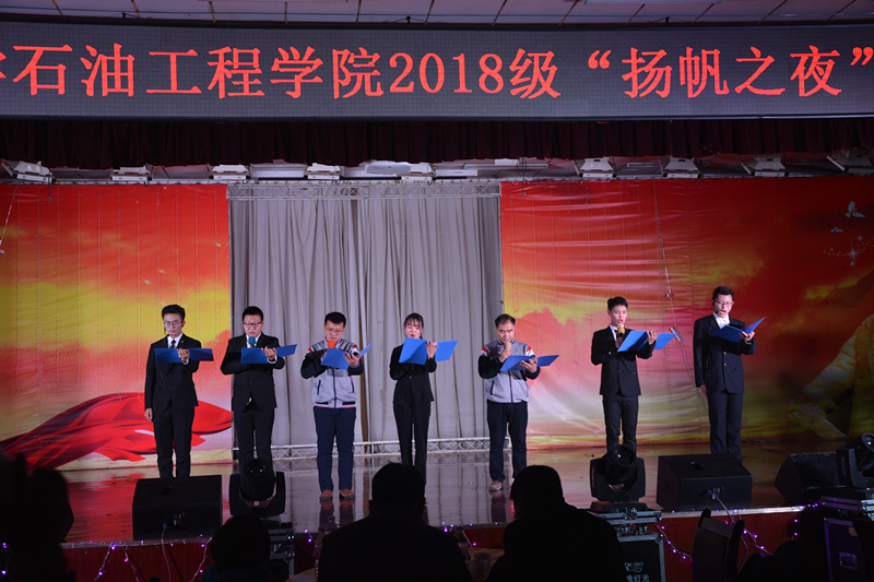 11月24日晚,石油工程學院2018級“揚帆之夜”迎新晚會在鄠邑校區(qū)騰輝大學生活動中心隆重舉行。出席本次晚會的領導和嘉賓有石油工程學院黨委書記馬勇、黨委副書記張建高、學生就業(yè)指導中心龐波老師、化學化工學院輔導員張少良老師,參加晚會的還有學院輔導員孫會珠、孫浩哲、劉曉陽老師以及學院2018級、其他各年級共約500名學生。