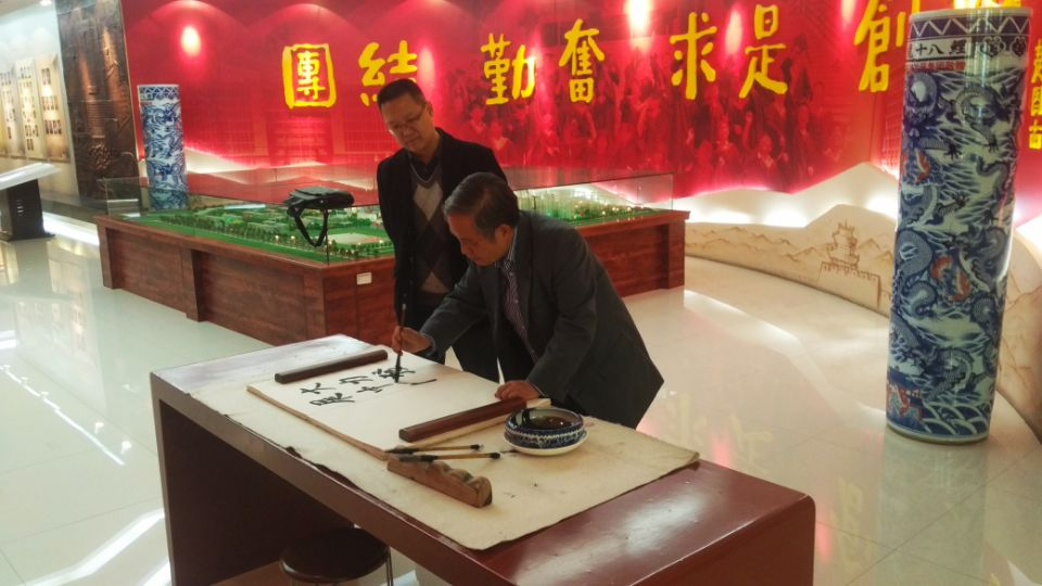 講座開始前,學(xué)院黨委副書記劉小波陪同Jerry C.Tien教授參觀了學(xué)校鐵人館和校史館。參觀結(jié)束后,Jerry C.Tien教授為校史館題字。