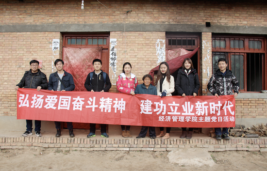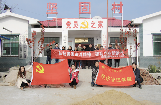 為認(rèn)真貫徹落實(shí)習(xí)近平總書記對弘揚(yáng)愛國奮斗精神作出的一系列重要指示和西石大黨組〔2018〕77號文件精神,按照學(xué)院具體工作部署,11月13日,經(jīng)濟(jì)管理學(xué)院“弘揚(yáng)愛國奮斗精神、建功立業(yè)新時(shí)代”主題黨日活動在學(xué)校對口幫扶的永壽縣永平鎮(zhèn)堅(jiān)固村開展。經(jīng)濟(jì)管理學(xué)院黨委副書記趙海濤、學(xué)院全體學(xué)工干部、學(xué)生黨員代表近20人參加。
