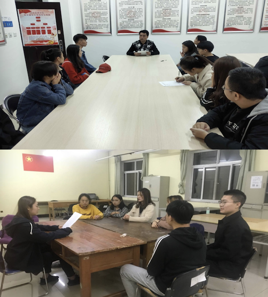 10月28日,各年級輔導(dǎo)員分別在辦公室、宿舍樓活動室等地召開了輔導(dǎo)員助理會議、班長會議、安全委員和心理委員會議等骨干學(xué)生干部會議。會上,對骨干學(xué)生干部重申了安全穩(wěn)定工作的重要性和嚴肅性,對工作要求、工作紀律都做了嚴格規(guī)定,要求骨干學(xué)生干部要講真話,說實情,對于隱瞞、包庇的要嚴肅處理,同時,要求骨干學(xué)生干部加強防范意識與發(fā)現(xiàn)問題的能力。