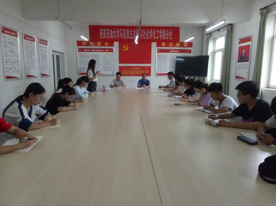 與會人員在董丙劍老師的帶領(lǐng)下重溫入黨誓詞。會上,李心宇同學宣讀了校馬克思主義研習社化學化工學院分社章程,社員代表曹成珺做代表發(fā)言。
