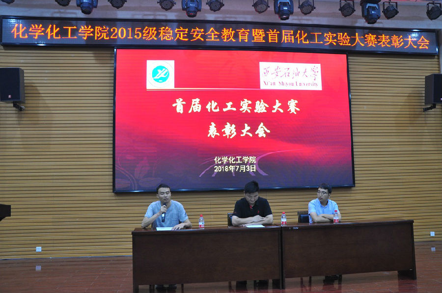 7月3日下午,化學(xué)化工學(xué)院在鄠邑校區(qū)就業(yè)指導(dǎo)中心多功能廳舉行2015級穩(wěn)定安全教育暨首屆化工實(shí)驗(yàn)大賽表彰大會。學(xué)院學(xué)管辦主任董丙劍,輔導(dǎo)員陳景輝、張少良出席了大會。學(xué)院2015級全體學(xué)生參加了大會。