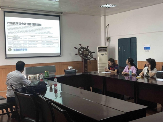 牛志文先生首先向大家詳細(xì)解讀了由三角會(huì)計(jì)集團(tuán)和美國(guó)巴魯克商學(xué)院聯(lián)合進(jìn)行的全方面美國(guó)會(huì)計(jì)師培訓(xùn)項(xiàng)目。該項(xiàng)目包含了美國(guó)商學(xué)院會(huì)計(jì)進(jìn)修、美國(guó)會(huì)計(jì)師培訓(xùn)和在美會(huì)計(jì)實(shí)習(xí)工作安排,全方位助力會(huì)計(jì)專(zhuān)業(yè)學(xué)生的專(zhuān)業(yè)技能提升和工作就業(yè)。隨后,牛志文先生介紹了三角會(huì)計(jì)集團(tuán)的業(yè)務(wù)范圍和人才組成,表達(dá)了求賢若渴的心情,誠(chéng)摯的邀請(qǐng)經(jīng)濟(jì)管理學(xué)院的畢業(yè)生去三角會(huì)計(jì)集團(tuán)就業(yè)。經(jīng)濟(jì)管理學(xué)院和美國(guó)三角集團(tuán)就研究生企業(yè)導(dǎo)師合作、畢業(yè)生就業(yè)推薦、在校生赴美實(shí)習(xí)、聯(lián)合科研項(xiàng)目等四方面達(dá)成了初步合作意向,雙方期望能夠強(qiáng)溝通合作,進(jìn)一步提高研究生培養(yǎng)質(zhì)量。