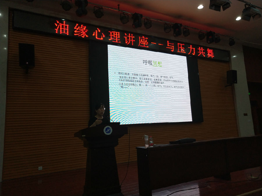大學(xué)生心理成長(zhǎng)指導(dǎo)中心的董建紅老師,作為此次講座的演講人,帶領(lǐng)了全體心理委員體會(huì)如何釋放壓力,如何放松自己,如何管理壓力等各個(gè)方面的情緒、知覺體驗(yàn)。其中老師講述了關(guān)于壓力的各種知識(shí)以及關(guān)于該壓力的真實(shí)事例,生動(dòng)形象的將生活中,及現(xiàn)階段的壓力展現(xiàn)在各位心理委員的面前,指導(dǎo)我們?nèi)绾蚊鎸?duì)壓力,如何觀察其他同學(xué)的心理壓力,及時(shí)疏導(dǎo),排查同學(xué)們的壓力等各個(gè)方面的知識(shí)。