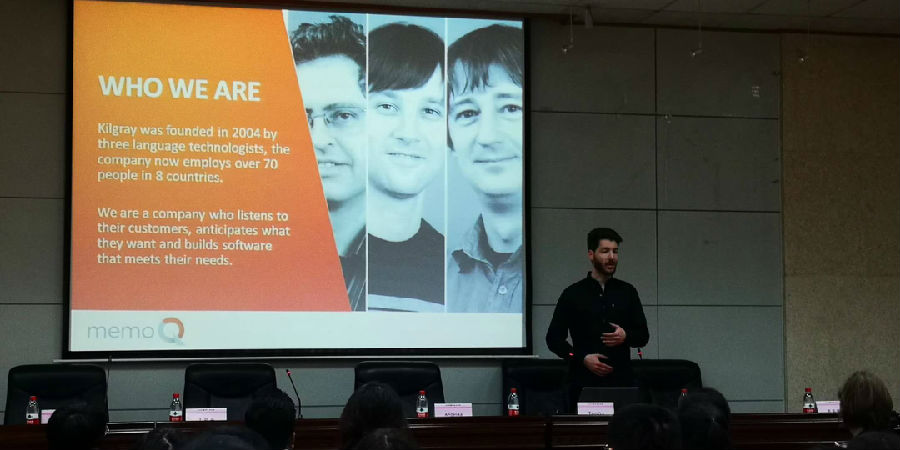 外國語學(xué)院院長于艷英致開幕詞,對各位嘉賓的到來表示熱烈的歡迎。Kilgray公司聯(lián)合創(chuàng)始人,memoQ創(chuàng)意總監(jiān)Gabor Ugray和渠道總監(jiān)Tomas Ritter分別對memoQ的開發(fā)理念和服務(wù)器技術(shù)進(jìn)行了介紹,享譽(yù)全球的翻譯軟件培訓(xùn)師Angelika Zerfass就翻譯項(xiàng)目創(chuàng)建、術(shù)語管理和質(zhì)量控制等作了十分詳實(shí)的報告。上海一者信息科技劉寧赫經(jīng)理對基于memoQ, Trados 的Tmxmall語料對齊技術(shù)、在線翻譯、語料庫管理等進(jìn)行了圖文并茂的釋解,并耐心地對與會者提出的問題進(jìn)行了深入淺出的解答。