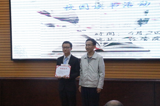 活動(dòng)中,十名選手依次介紹了自己最喜歡的一本書,分享了自己的讀書感受,鼓勵(lì)大家多讀書、讀好書、好讀書,在閱讀中充實(shí)個(gè)人的精神世界。經(jīng)濟(jì)系吳文潔教授、石冬蓮教授、姚小劍老師、董春詩(shī)老師、劉毅老師擔(dān)任了本次活動(dòng)的評(píng)委。比賽中選手們姿態(tài)自信、措辭慷慨、描述生動(dòng),博得了臺(tái)下觀眾的陣陣掌聲。樊昕昕同學(xué)分享《平凡的世界》心得,從她對(duì)這本書的感受中,我們可以感受到即使她是一個(gè)平凡的人但卻有著一個(gè)不平凡的精神世界;黃海云同學(xué)帶來(lái)的《咖啡飄香星巴克》,又將我們帶入了另一個(gè)不同的精神世界,從她的言語(yǔ)中我們感受到了星巴克那濃濃的文化生活;羅一雯同學(xué)帶來(lái)的《習(xí)慣的力量》使得大家懂得了一個(gè)好習(xí)慣的重要性;于嘯林同學(xué)的《明朝那些事》將我們的思緒帶到了那個(gè)繁榮昌盛的明朝。董春詩(shī)老師和劉毅老師在活動(dòng)過(guò)程中進(jìn)行了精彩的點(diǎn)評(píng)。經(jīng)過(guò)評(píng)委評(píng)選,于嘯林同學(xué)獲得一等獎(jiǎng),張婷婷、高一涵、黃海云同學(xué)獲得二等獎(jiǎng),樊昕昕、路倩倩、李龍霞、吳昱、郭敏、羅一雯等同學(xué)獲得三等獎(jiǎng)。與會(huì)領(lǐng)導(dǎo)和老師分別為獲獎(jiǎng)學(xué)生頒獎(jiǎng)。