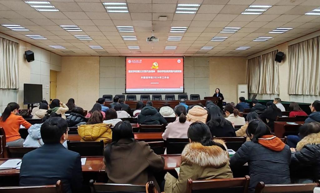 田虹霞在總結講話中指出,今年是中華人民共和國成立75周年,是“十四五”規(guī)劃關鍵之年,也是落實學校第三次黨代會各項目標任務的開局之年,全體教職工要進一步增強責任意識,主動擔當作為,狠抓工作落實,凝心聚力推動發(fā)展。一要抓實理論學習,進一步加強政治理論、專業(yè)和業(yè)務知識學習,立足本職,了解高等教育特別是外語學科新知識、新方法、新趨勢;二要強化質(zhì)量建設,進一步提高專業(yè)建設、課程建設、課堂教學和畢業(yè)生就業(yè)質(zhì)量,落實好立德樹人根本任務;三要深化內(nèi)涵建設,聚焦國家重大戰(zhàn)略需求和學校行業(yè)特色,強化“外語+專業(yè)”的學科布局,提高人才培養(yǎng)質(zhì)量;四要發(fā)揮黨建引領,以黨建標桿院系培育單位為契機,發(fā)揮黨支部戰(zhàn)斗堡壘和黨員先鋒模范作用,實現(xiàn)黨建與業(yè)務的深度融合;五要狠抓作風建設,強化師德師風,引導教師弘揚教育家精神,提振工作作風,做“四有好老師”;六要夯實穩(wěn)定安全,落實思想教育、意識形態(tài)和穩(wěn)定安全工作責任,營造良好的發(fā)展環(huán)境和氛圍。