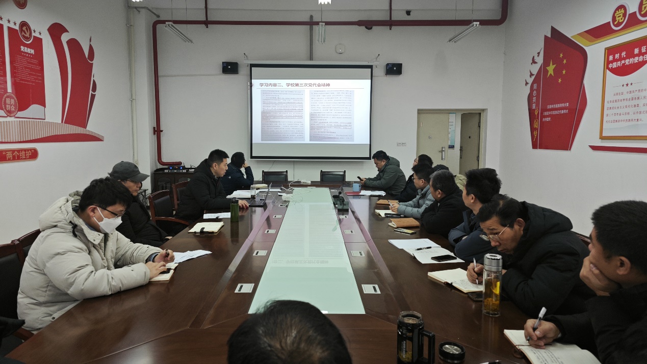 隨后,李慶本帶領(lǐng)大家學(xué)習(xí)了學(xué)校第三次黨代會精神。他從第三次黨代會報告中“銳意進(jìn)取、全面發(fā)展的六年”“勇?lián)抡鞒躺系男率姑薄皧^力譜寫學(xué)校高質(zhì)量發(fā)展的新篇章”“全面加強(qiáng)新時代學(xué)校黨的建設(shè)”四個方面內(nèi)容進(jìn)行宣講,全面?zhèn)鬟_(dá)了第三次黨代會的主要精神。學(xué)校黨委提出的關(guān)于學(xué)校事業(yè)“三個發(fā)展階段”、實(shí)現(xiàn)“七個新目標(biāo)”、實(shí)施“六大行動”等內(nèi)容令與會同志倍感振奮,大家一致表示要以更加飽滿的精神和干勁投入到工作中去,以更加優(yōu)異的業(yè)績?yōu)閷W(xué)校事業(yè)發(fā)展做出應(yīng)有的貢獻(xiàn)。
