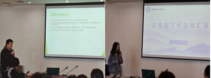 學(xué)院團(tuán)委學(xué)生會各部門主要負(fù)責(zé)人依次進(jìn)行述職匯報(bào),以PPT形式就2023年度工作成果,組織建設(shè)、日常事務(wù)等情況進(jìn)行匯報(bào),深度剖析了工作中遇到的問題與挑戰(zhàn),對不足之處進(jìn)行反思,同時提出了新一年的工作規(guī)劃和暢想。他們表示將發(fā)揮好師生之間的橋梁紐帶作用,切實(shí)解決身邊同學(xué)的合理訴求,用實(shí)際行動為同學(xué)做好事、做實(shí)事,凝心聚力,齊同并進(jìn)