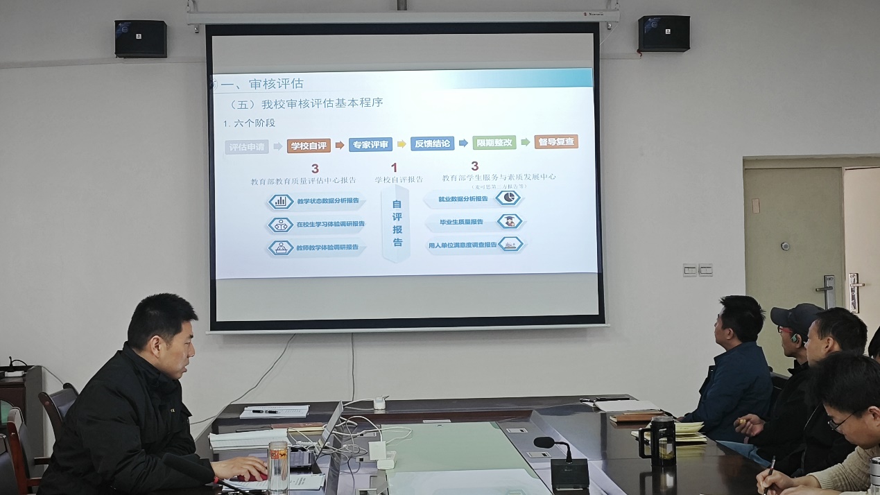 會(huì)議第二項(xiàng),李慶本帶領(lǐng)全體教職工開(kāi)展本科教育教學(xué)思想大討論專題學(xué)習(xí)。他向全體教職工講解了新一輪教育教學(xué)審核評(píng)估的背景意義、指導(dǎo)原則、指標(biāo)體系等方面內(nèi)容,重點(diǎn)介紹了我校新一輪審核評(píng)估工作的工作部署、基本程序、準(zhǔn)備工作以及教職工應(yīng)知應(yīng)會(huì)等方面的知識(shí)內(nèi)容。