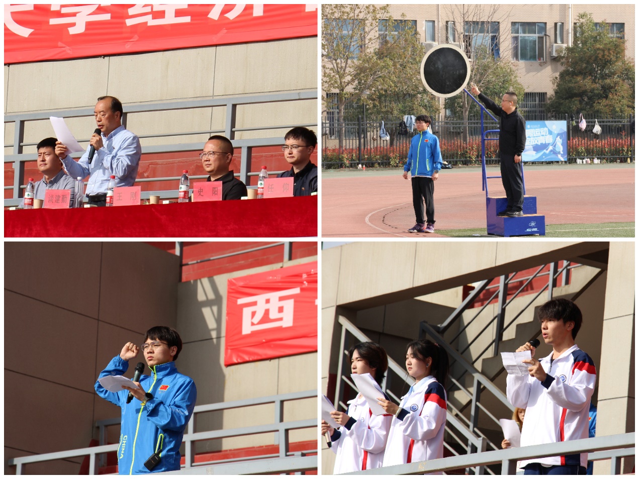 經(jīng)濟(jì)管理學(xué)院黨委書記談建勤致開幕辭,他代表學(xué)院對(duì)全體工作人員的辛苦付出表示感謝,對(duì)運(yùn)動(dòng)健兒們致以美好祝愿。他表示,體育運(yùn)動(dòng)會(huì)是人類社會(huì)競爭精神、拼搏精神與協(xié)作精神的集中體現(xiàn),同學(xué)們不僅要在學(xué)業(yè)上勇于爭先,還要在德智體美勞等更廣泛的領(lǐng)域內(nèi)實(shí)現(xiàn)新的突破,為投身新時(shí)代中國特色社會(huì)主義的宏圖偉業(yè),獻(xiàn)身波瀾壯闊的祖國能源事業(yè)奠定良好的身心基礎(chǔ)??偛门虚L代表李東升與運(yùn)動(dòng)員代表蘇子程分別宣誓。學(xué)院黨委副書記王剛打響100米表演賽第一槍,宣布學(xué)院第十四屆學(xué)生運(yùn)動(dòng)會(huì)正式開始。