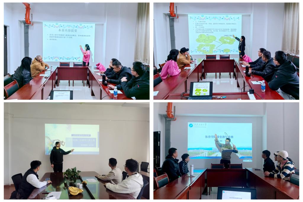 本次競賽由體育學院教師全員參與,各教研小組分組別進行組織開展,呈現(xiàn)了多場次精彩紛呈的教學比拼活動。本次課堂教學競賽以教學方法創(chuàng)新、教學內(nèi)容設計、教學案例展示等形式展開,內(nèi)容涵蓋大學體育各專項(足球、籃球、排球、乒乓球、羽毛球、網(wǎng)球、武術、健美操、休閑體育等)項目,以及社會體育指導與管理專業(yè)理論課程(運動訓練學、運動生理學、體育保健學等)內(nèi)容。教學競賽中,參賽教師通過精心準備的教學案例和生動形象的教學示范,向評委和觀眾展現(xiàn)了各自不同的教學水平和教學風采,充分展示了每位教師的教學設計能力和教學創(chuàng)新意識。