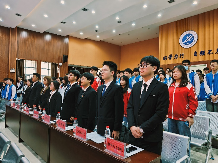 大會(huì)在莊嚴(yán)的國歌聲中拉開帷幕。校團(tuán)委李政老師代表校團(tuán)委、校學(xué)生會(huì)及校研究生會(huì)致開幕詞。他對(duì)學(xué)院團(tuán)委以及學(xué)生會(huì)近一年多來的工作給予了充分肯定,并代表校團(tuán)委向?qū)W院廣大團(tuán)員青年提三點(diǎn)希望:一是要堅(jiān)定理想信念,樹牢奮斗之志。高舉習(xí)近平新時(shí)代中國特色社會(huì)主義思想偉大旗幟,始終圍繞學(xué)?!傲⒌聵淙恕备救蝿?wù),不斷聚焦學(xué)?!笆奈濉笔聵I(yè)發(fā)展規(guī)劃,為學(xué)校高水平教學(xué)研究型大學(xué)建設(shè)貢獻(xiàn)青春力量。二是要勇?lián)鷷r(shí)代重任,綻放青春之花。始終胸懷“國之大者”,敢于“自討苦吃”,不斷涵養(yǎng)“功成不必在我,功成必定有我”的胸襟和擔(dān)當(dāng),進(jìn)一步培養(yǎng)擔(dān)當(dāng)實(shí)干的工作作風(fēng)。三是要錘煉自身本領(lǐng),勇攀時(shí)代高峰。要樹立對(duì)馬克思主義的信仰、對(duì)中國特色社會(huì)主義的信念、對(duì)中華民族偉大復(fù)興中國夢的信心,把自己的愛國熱情和理想抱負(fù)融化在刻苦學(xué)習(xí)、掌握本領(lǐng)之中,讓青春在祖國和人民最需要的地方綻放絢麗之花。