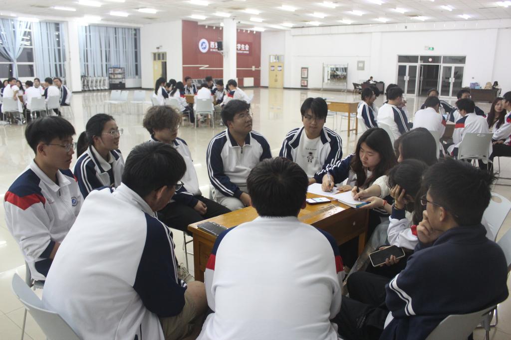 活動(dòng)中,董建紅以領(lǐng)導(dǎo)力是什么作為開(kāi)篇,引導(dǎo)同學(xué)們思考領(lǐng)導(dǎo)力的本質(zhì)。通過(guò)對(duì)比野牛群式領(lǐng)導(dǎo)雁群式領(lǐng)導(dǎo)兩種不同的領(lǐng)導(dǎo)風(fēng)格,使大家不僅了解到領(lǐng)導(dǎo)力的多樣性和靈活性,拓寬了學(xué)生們對(duì)領(lǐng)導(dǎo)力的認(rèn)知,同時(shí)也激發(fā)了他們探索不同領(lǐng)導(dǎo)風(fēng)格的興趣。我型我塑環(huán)節(jié),同學(xué)們通過(guò)特定的姿勢(shì)來(lái)介紹自己,這既是一個(gè)展示個(gè)人特點(diǎn)的機(jī)會(huì),也是一個(gè)鍛煉自我表達(dá)能力的過(guò)程。通過(guò)這個(gè)環(huán)節(jié),大家可以學(xué)會(huì)如何以獨(dú)特的方式展現(xiàn)自己,這對(duì)于培養(yǎng)領(lǐng)導(dǎo)力中的感召力和影響力至關(guān)重要;販賣希望環(huán)節(jié),小組成員共同分享愿望,并一起討論達(dá)成愿望的解決方案。這不僅能夠加強(qiáng)團(tuán)隊(duì)之間的凝聚力和溝通力,還能夠讓大家學(xué)會(huì)如何在集體中提出和采納積極、有價(jià)值的建議。同時(shí),通過(guò)討論如何摒棄一些成員的觀點(diǎn)而盡量不使他們感到失落,同學(xué)們可以學(xué)會(huì)在領(lǐng)導(dǎo)過(guò)程中平衡個(gè)人和集體的利益,展現(xiàn)出決斷力和控制力。五力模型環(huán)節(jié),董老師引導(dǎo)同學(xué)們回顧活動(dòng)環(huán)節(jié),鼓勵(lì)他們分享各自的感受和收獲,從而讓大家對(duì)領(lǐng)導(dǎo)力有了更為深刻的認(rèn)識(shí)。在討論領(lǐng)導(dǎo)力五力模型(感召力、前瞻力、決斷力、控制力和影響力)過(guò)程中,大家對(duì)領(lǐng)導(dǎo)力的各個(gè)方面有了更加清晰的理解,并紛紛思考如何在日常生活中不斷提升自己的領(lǐng)導(dǎo)力。