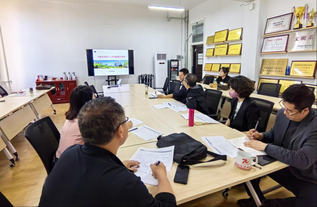 為切實做好本科教育教學(xué)審核評估工作,提升教師教育教學(xué)能力,4月12日,外國語學(xué)院在雁塔校區(qū)華油能源樓727會議室舉辦2024年課堂教學(xué)競賽。校級教學(xué)名師、系(部)主任擔(dān)任評委,教學(xué)競賽由副院長陳武主持,學(xué)院部分教師到場觀摩。