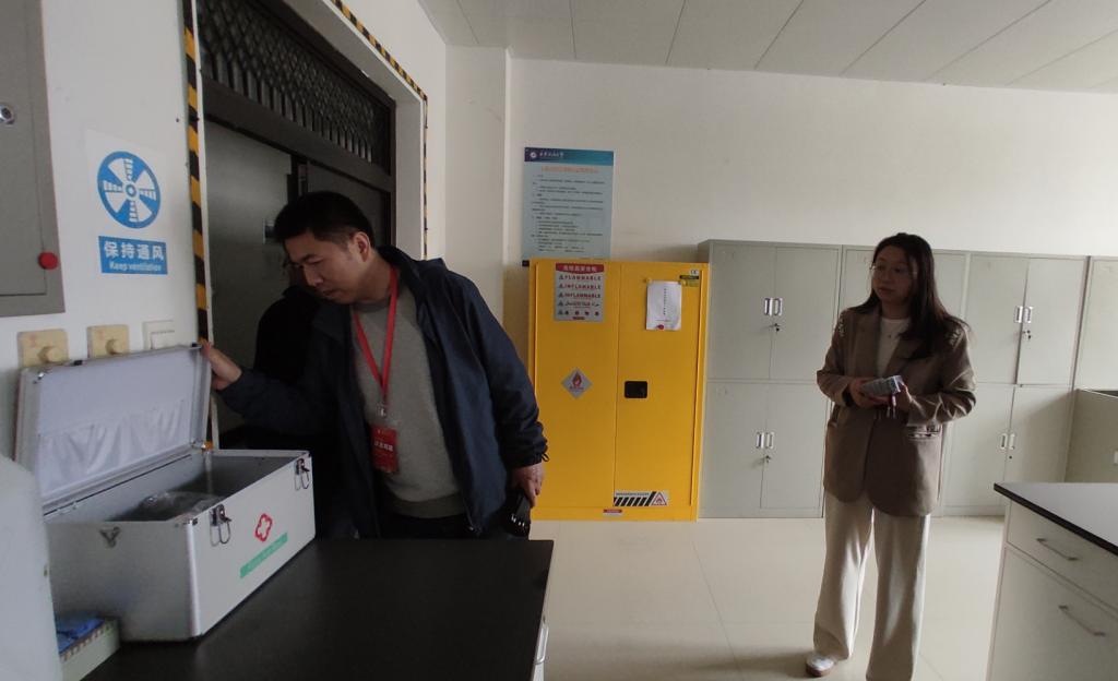 為深入貫徹落實學(xué)?!蛾P(guān)于進一步加強校園安全工作的通知》以及近期穩(wěn)定安全工作會議精神,扎實做好實驗室安全工作,4月18-19日,實驗室管理處會同保衛(wèi)處、國有資產(chǎn)處、后勤管理處分別對鄠邑校區(qū)和雁塔校區(qū)實驗室開展了安全檢查。此次檢查重點是各實驗室消防安全、用電安全、環(huán)境衛(wèi)生、人員及設(shè)備管理,以及相關(guān)學(xué)院危險化學(xué)品管理、實驗室安全隱患整改等情況。