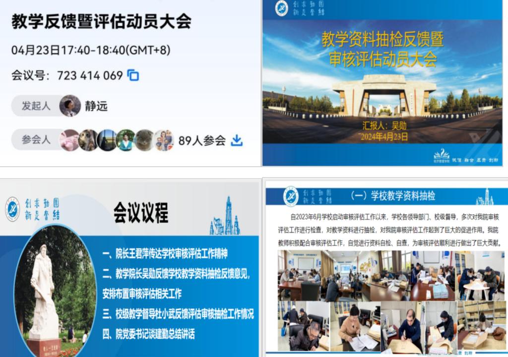 4月23日,經(jīng)濟管理學院召開全院教職工會議,反饋近期學校教學資料抽檢專家意見,開展審核評估專家進校前工作動員。