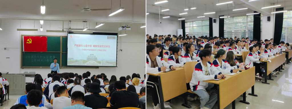 課堂上,龐秉謙老師針對“大學(xué)生黨員發(fā)展面臨的形勢和存在的主要問題”、“掌握發(fā)展黨員的標(biāo)準(zhǔn)、工作要求和工作程序”以及“積極爭取加入黨組織,大學(xué)生應(yīng)該怎么做”三個方面為同學(xué)們進(jìn)行了講述。在具體內(nèi)容上,龐秉謙老師根據(jù)“《中國共產(chǎn)黨發(fā)展黨員工作細(xì)則》的制定和修訂”、“中國共產(chǎn)黨發(fā)展黨員的手續(xù)和程序”、“對照黨員標(biāo)準(zhǔn),爭取早日入黨”這三個主題進(jìn)行了深入淺出的講解。最后,龐秉謙老師殷切寄語同學(xué)們要帶頭做黨的路線方針政策的宣傳者,帶頭做朋輩幫扶、互助友愛的踐行者,帶頭做就業(yè)創(chuàng)業(yè)、志愿服務(wù)國家的爭先者,帶頭做鉆研科學(xué)知識、勇攀科學(xué)高峰的探索者。