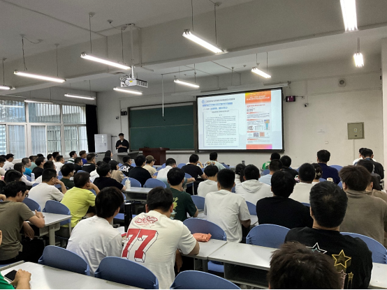 其次,王老師為同學們介紹機械工程學院一院一品活動,針對學院特色,開展“以賽促學,以賽強技,以賽提能”特色活動,并邀請鄭澤涵同學為大家分享第十屆中國研究生能源裝備大賽的特等獎經(jīng)驗。王老師詳細介紹了參賽過程中的準備工作、團隊合作的重要性以及解決問題的方法和經(jīng)驗。希望大家能借鑒這次經(jīng)驗,提高自己的學術素養(yǎng)和研究能力,積極參與學術競賽,增強自身學習能力,建設學院優(yōu)良學風。