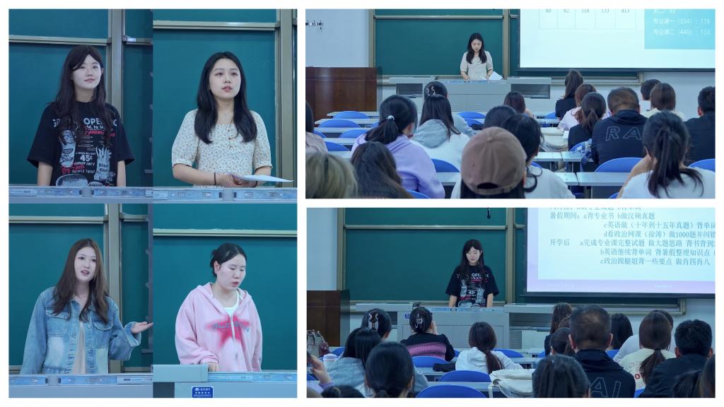 5月29日下午,人文學院于鄠邑校區(qū)A502舉辦“榜樣引領 博采眾長”考研經(jīng)驗分享會。本次分享會聚焦于中新聞專業(yè),邀請人文學院考取四川大學的趙文茜、鄭州大學的朱玥瑤、西安石油大學的赫雅婷以及江蘇師范大學的張晏梓四位同學主講,旨在通過2024屆已錄取高分學生的親身經(jīng)歷和寶貴建議,激勵和幫助更多學子高效備考。2021級輔導員張馨元及百余名計劃考研學生參加會議。