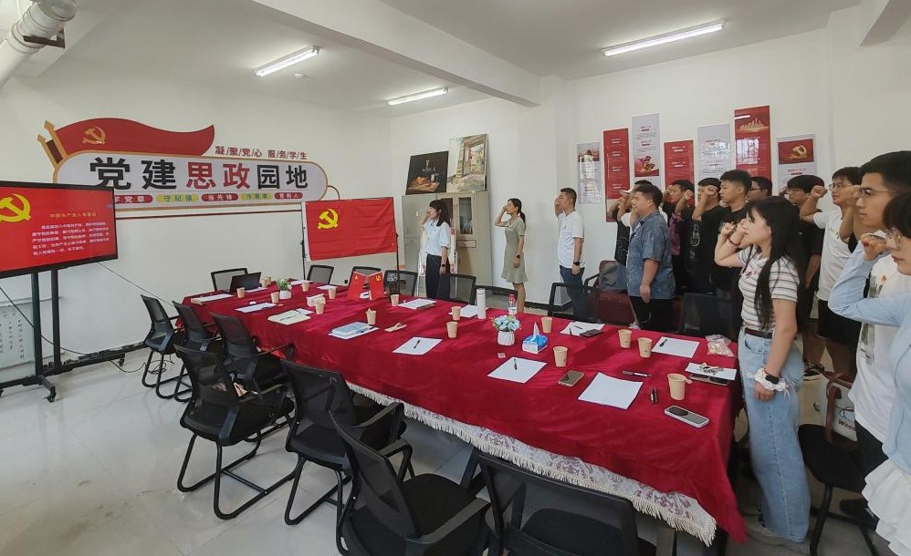全體黨員同志在馬黎的帶領(lǐng)下重溫入黨誓詞。