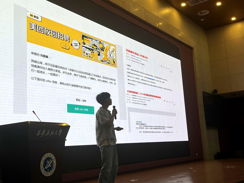 講座伊始,高博首先為同學(xué)們分享了當(dāng)前計(jì)算機(jī)就業(yè)市場的趨勢和變化,強(qiáng)調(diào)了技能培養(yǎng)的重要性以及如何通過實(shí)習(xí)和項(xiàng)目經(jīng)驗(yàn)增強(qiáng)自身競爭力。隨后介紹了2024屆秋招以及春招的相關(guān)情況,通過強(qiáng)調(diào)校招呈現(xiàn)出的招聘需求減少、招聘節(jié)奏緩慢和求職人數(shù)下降的現(xiàn)實(shí),提醒同學(xué)們不可盲目樂觀,要樹立理性平實(shí)的就業(yè)觀念。此外,高博還分析了IT行業(yè)的自身優(yōu)勢,解析IT大廠的招聘要點(diǎn),從筆試、面試、實(shí)習(xí)等環(huán)節(jié)列舉應(yīng)聘者的優(yōu)秀素養(yǎng),強(qiáng)調(diào)不斷提高個(gè)人核心競爭力尤為關(guān)鍵。最后,高博希望同學(xué)們立足實(shí)際,找準(zhǔn)定位,保持旺盛的學(xué)習(xí)精力,不斷提升學(xué)習(xí)能力,以良好的精神面貌迎接個(gè)人發(fā)展中的各種挑戰(zhàn)。