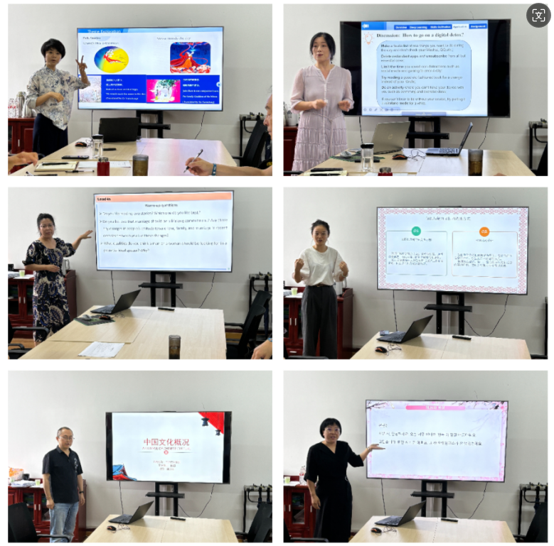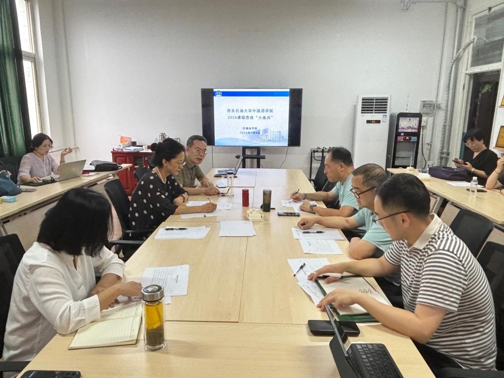 為認(rèn)真貫徹落實習(xí)近平總書記關(guān)于學(xué)校思想政治理論課的重要論述,加強高素質(zhì)、創(chuàng)新型教師隊伍建設(shè),深化課程育人質(zhì)量改革,結(jié)合《中共陜西省委辦公廳關(guān)于印發(fā)〈全國“大思政課”綜合改革試驗區(qū)陜西省實施方案〉的通知》(陜辦字〔2023〕54號)精神,按照西安石油大學(xué)關(guān)于開展2024年思政課程課程思政教師 “大練兵”主題活動的通知要求,外國語學(xué)院于7月8日下午在華油能源樓727舉辦了課程思政“大練兵”講課比賽,學(xué)院黨委書記張建高、副院長陳武、大學(xué)外語第一教學(xué)部黨支部書記付俊芳、大學(xué)外語第二教學(xué)部主任彭健、英語系主任鐘澤波、翻譯系主任秦艷霞、俄語系黨支部書記李娜、多語種教學(xué)部主任陳旭參加了本次比賽。
